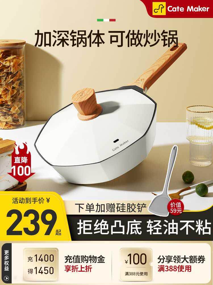 卡特马克平底锅不粘锅家用炒锅加深煎炒锅炒菜锅煎饼磁炉燃气通用