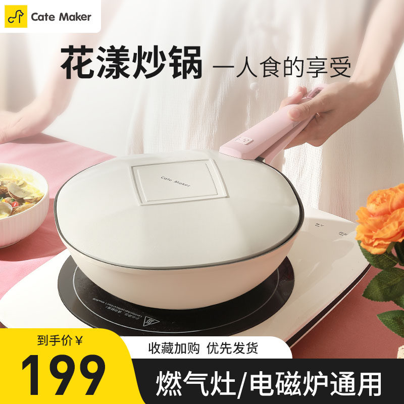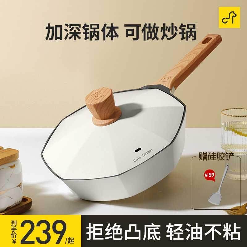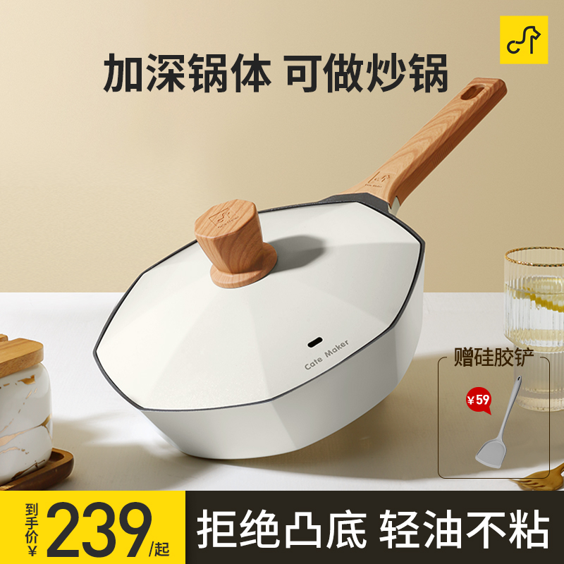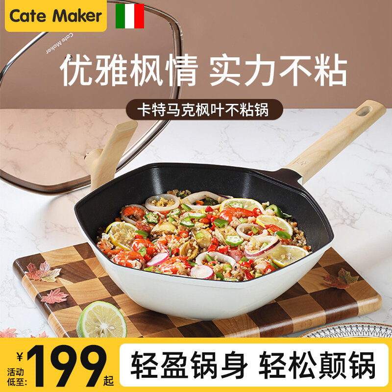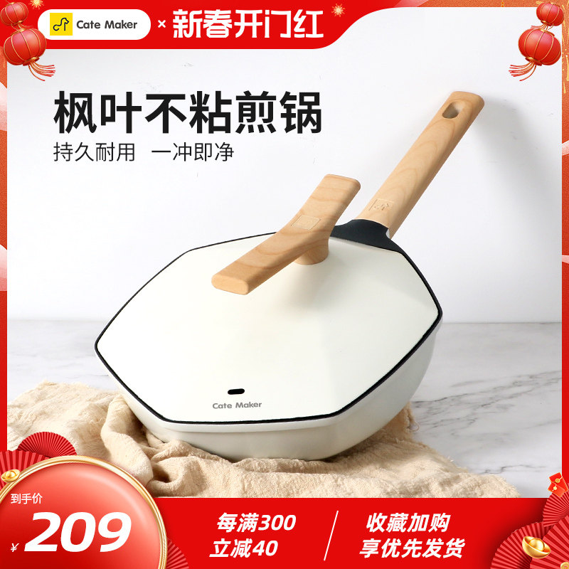 卡特马克麦饭石不粘锅高颜值网红枫叶平底炒菜锅电磁炉燃气灶适用