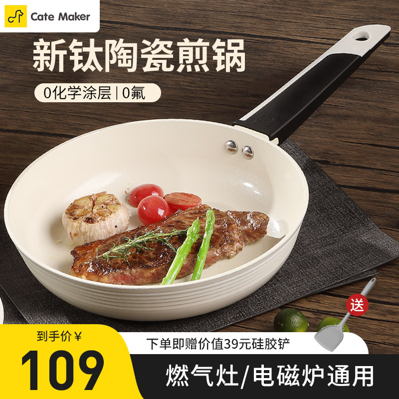 卡特马克白玉兰钛陶瓷煎锅不粘锅平底锅家用少油烟牛排煎锅烙饼