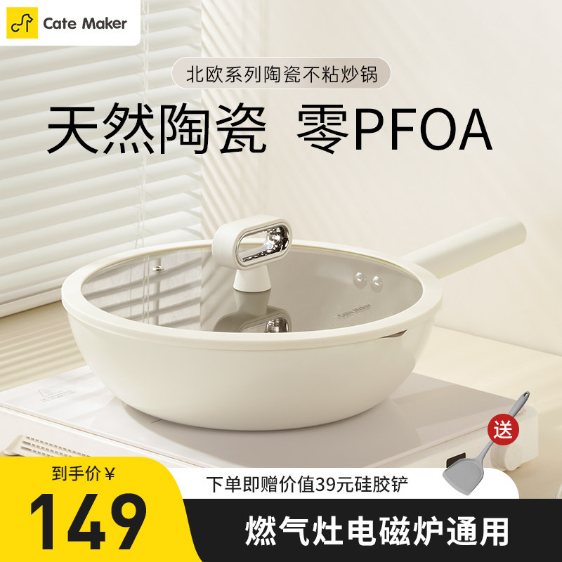 卡特马克北欧陶瓷不粘锅平底锅炒锅家用少油烟复底燃气电磁炉通用