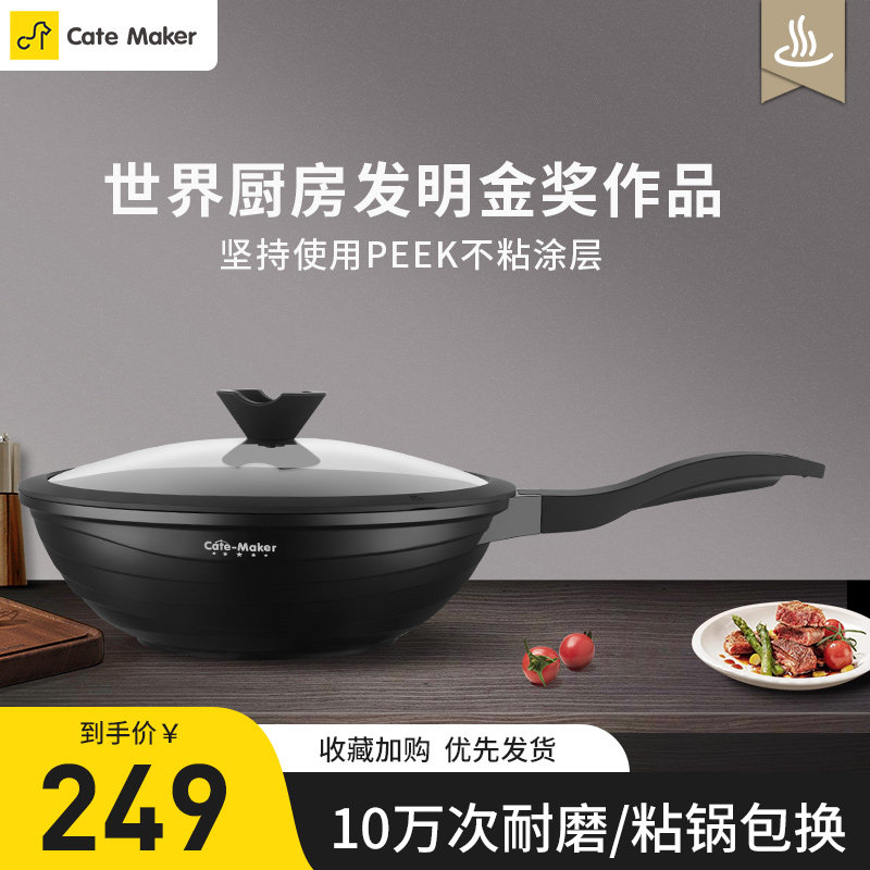 卡特马克唱片锅不粘锅炒锅家用炒锅电磁炉燃气灶专用平底炒菜锅