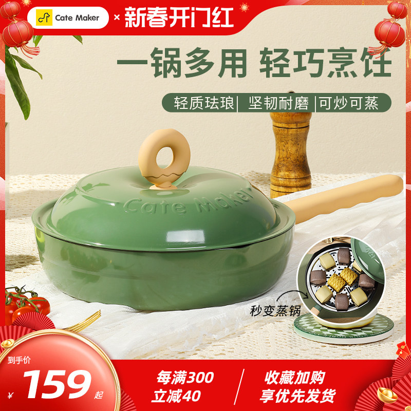 卡特马克甜甜圈不粘炒锅珐琅搪瓷家用炒菜锅具厨具电磁炉燃气平底