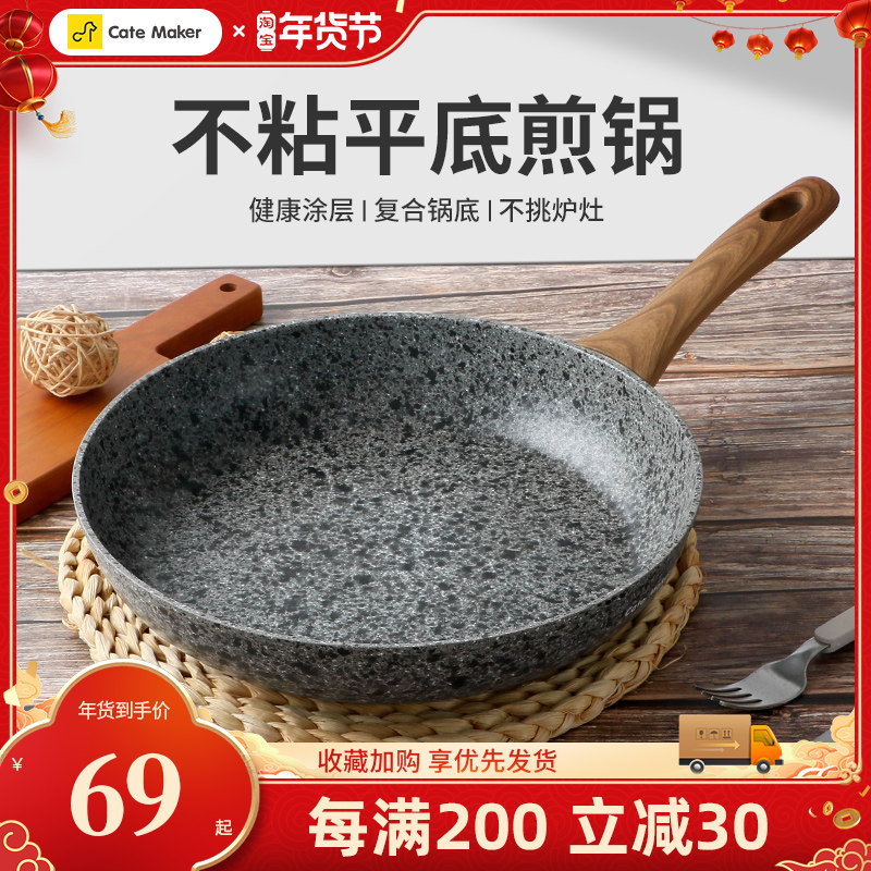 卡特马克不粘锅官方旗舰店家用麦饭石平底炒菜锅电磁炉燃气灶专用