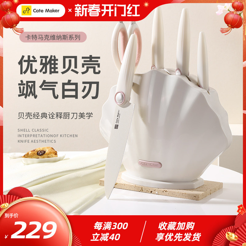 卡特马克高颜值贝壳陶瓷刀家用刀具厨房套装组合菜刀切菜刀水果刀