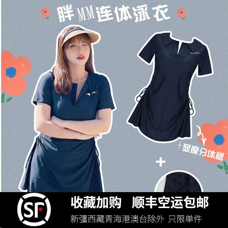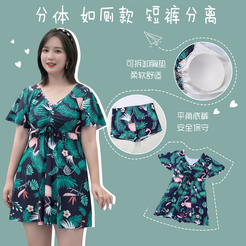 泳衣女大码胖mm显瘦分体裙式短袖宽松保守平角裤200斤温泉游泳衣