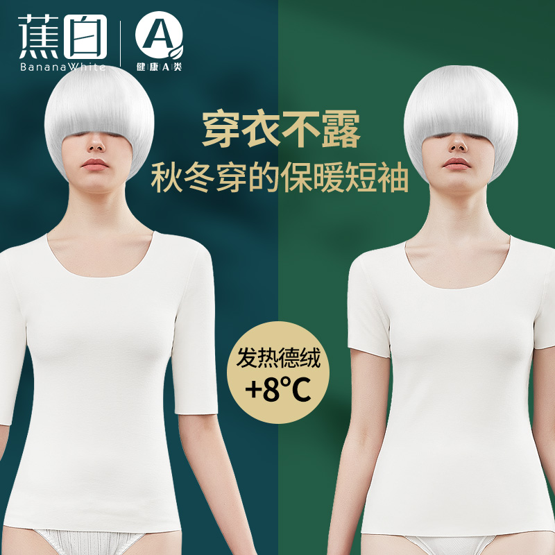 德绒半袖五分女保暖内衣加绒七分袖上衣中袖t恤厚短袖秋衣打底衫