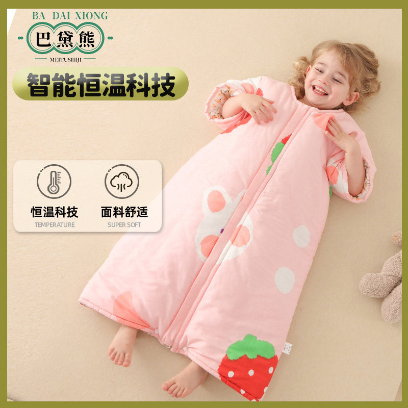 宝宝睡袋恒温秋冬季厚款婴儿短袖纯棉分腿儿童四季防踢被睡觉神器