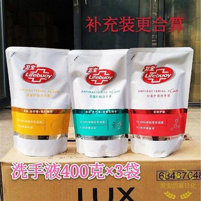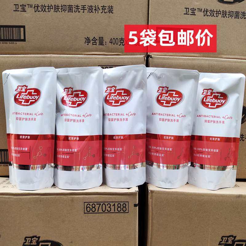 新品卫宝优效护肤抑菌洗手液400克x5袋装补充装滋润替换装抗菌品