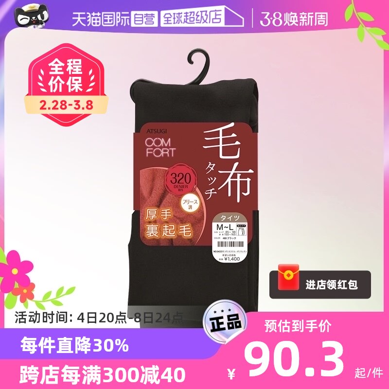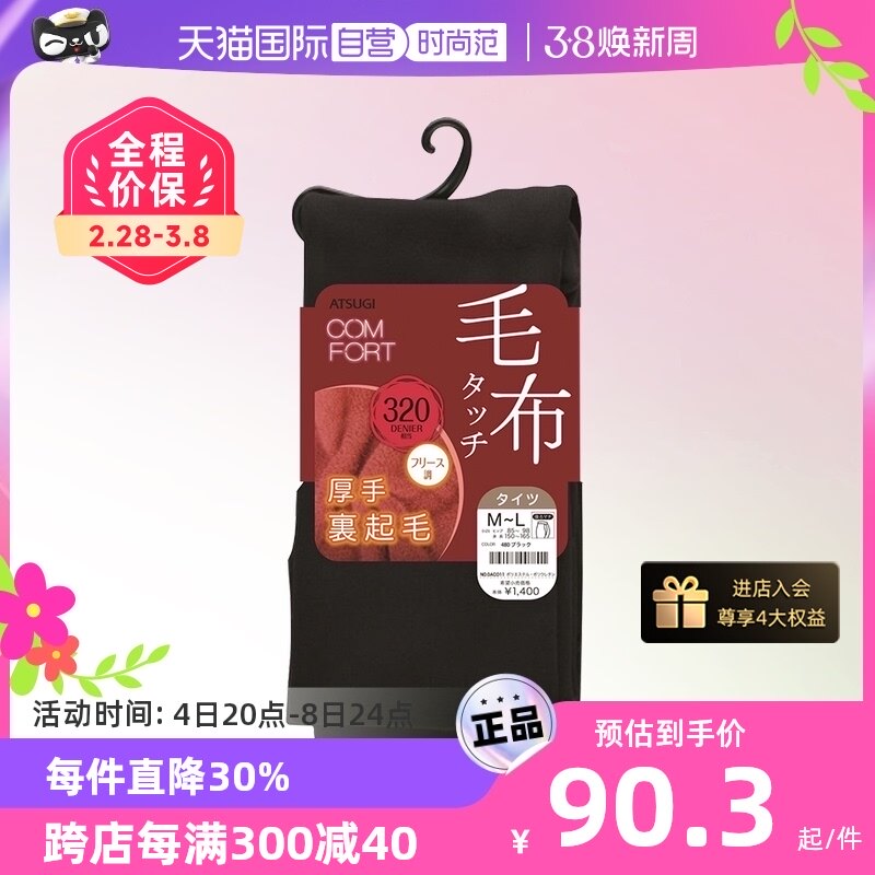 【自营】ATSUGI/厚木日本进口秋冬加绒保暖打底裤连裤袜320D加厚