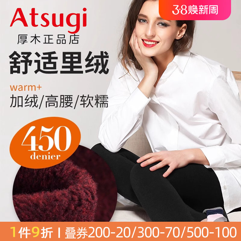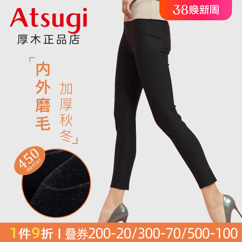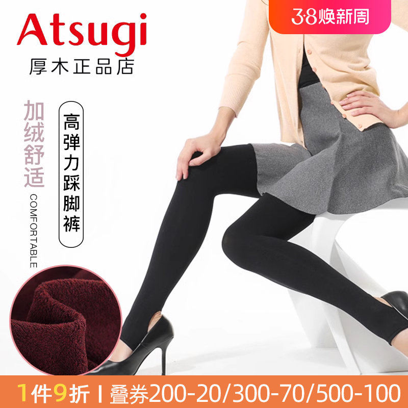 ATSUGI/厚木450D加绒舒适女士保暖踩脚裤高弹力厚打底裤2023秋冬