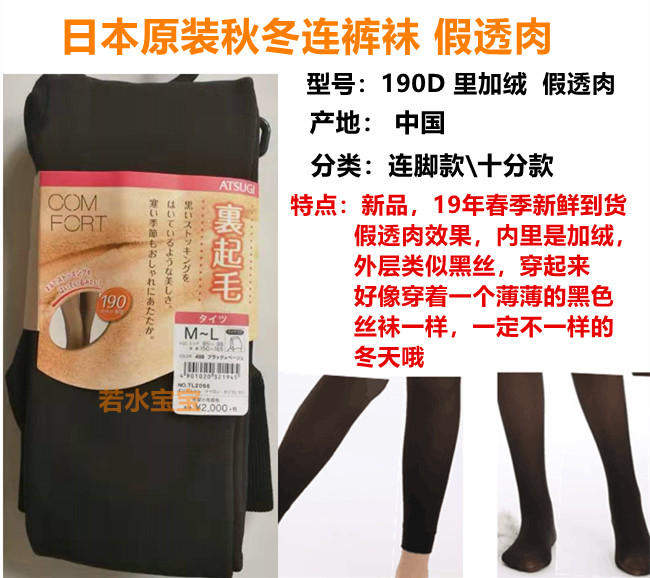 包邮日本厚木秋冬打底裤190D假透肉裹起毛加绒加厚连裤袜十分裤