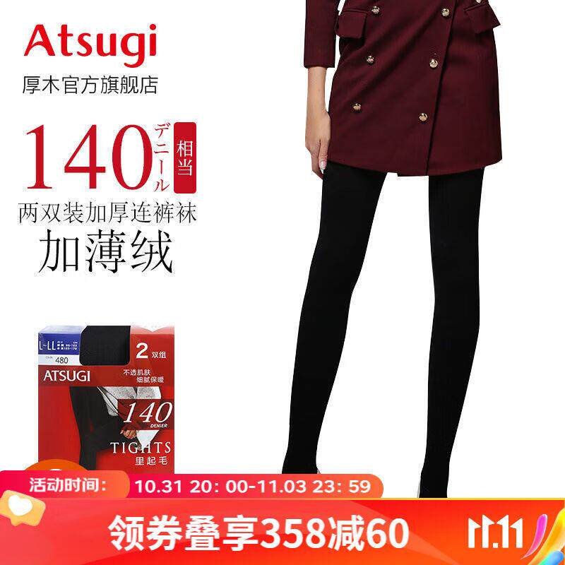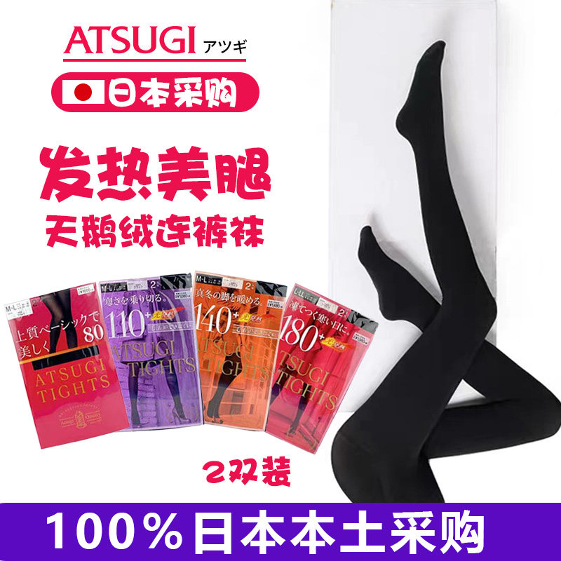 日本Atsugi厚木2双发热打底裤袜天鹅绒110D140D180D光腿神器