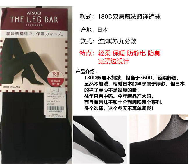 日本厚木秋冬180d魔法瓶连裤袜自发热袜打底裤天鹅绒80D160D210D