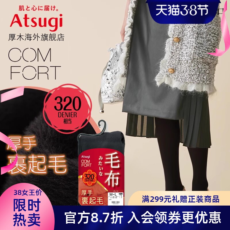厚木ATSUGI打底裤加绒加厚保暖防寒柔软高腰秋冬320D抓绒长裤袜女