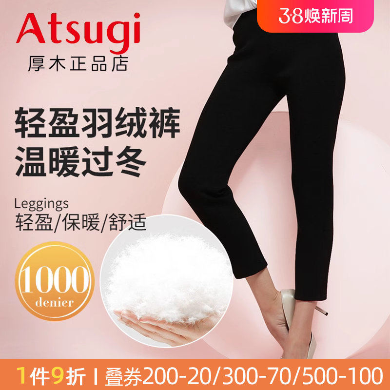 ATSUGI/厚木秋冬加厚保暖羽绒九分裤轻盈蓬松高腰修身打底裤女士