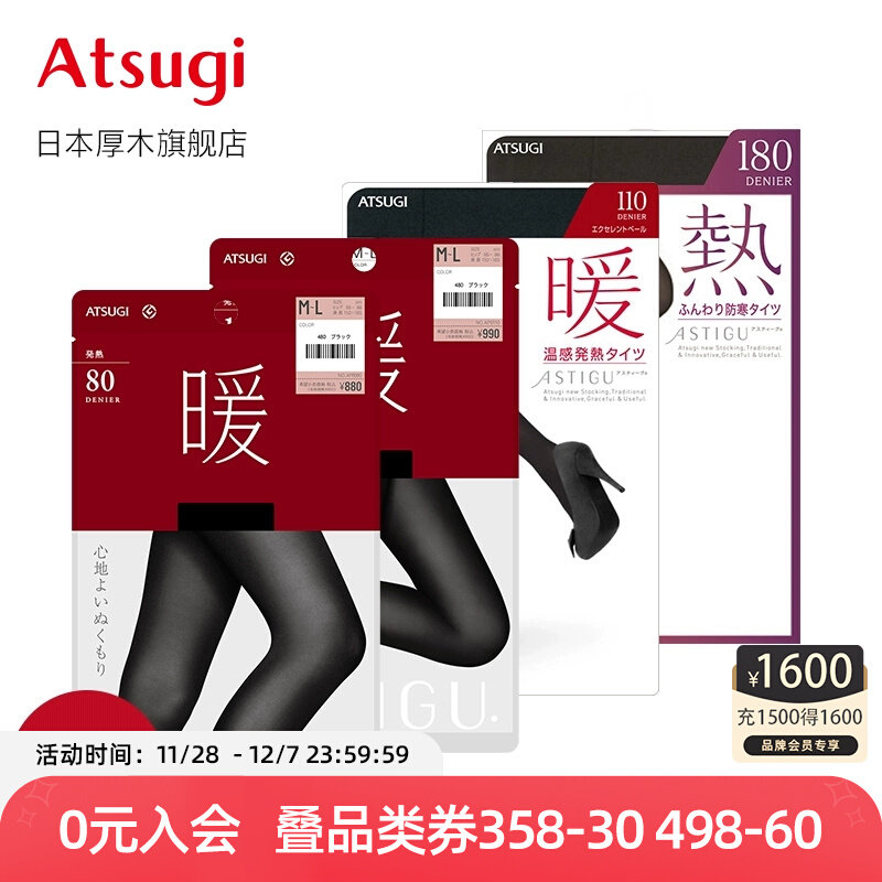 Atsugi厚木 双层针织加厚连裤袜 秋冬保暖发热冬季锁温光发热