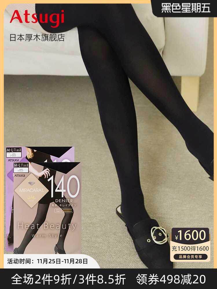 ATSUGI日本厚木秋冬110/140D发热袜连裤袜女显瘦保暖黑色肤色丝袜