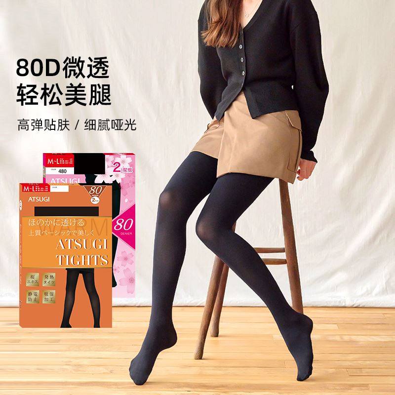 日本厚木2双装80D中加厚天鹅绒连裤袜黑丝袜女日系春秋秋季款职业
