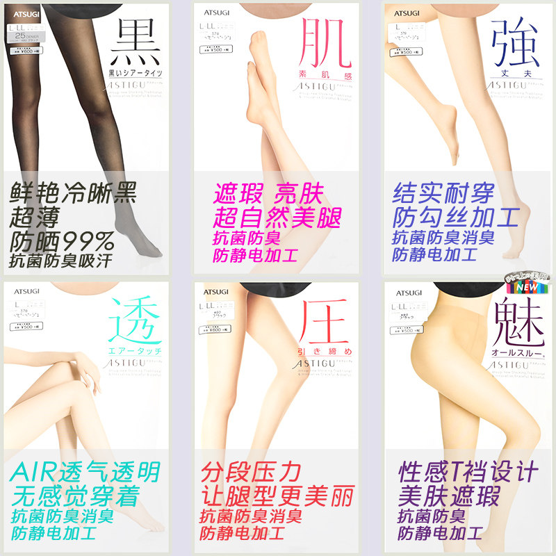 日本厚木ATSUGI丝袜防晒防静电耐穿开裆透气夏季超薄免脱连裤袜女