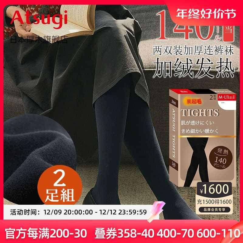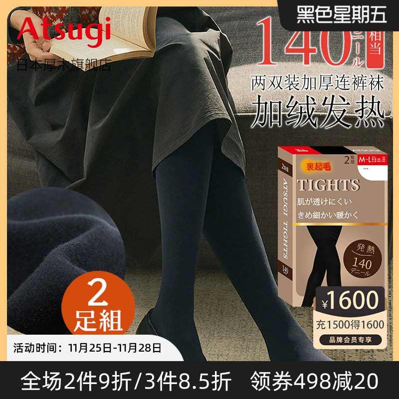 【直播热品】厚木ATSUGI秋冬140D两双装发热袜连裤冬季保暖黑丝女