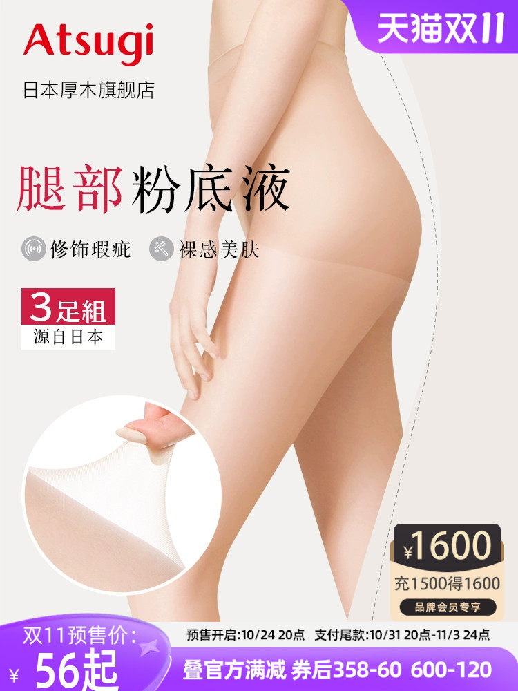 厚木ATSUGI丝袜素肌透明肤感防静电消臭防晒隐形春夏连裤袜女3双
