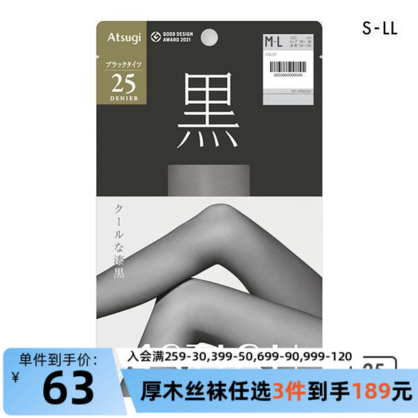 厚木ATSUGI女士丝袜黑系列亲肤时尚透感抗菌防臭25D少女连裤袜