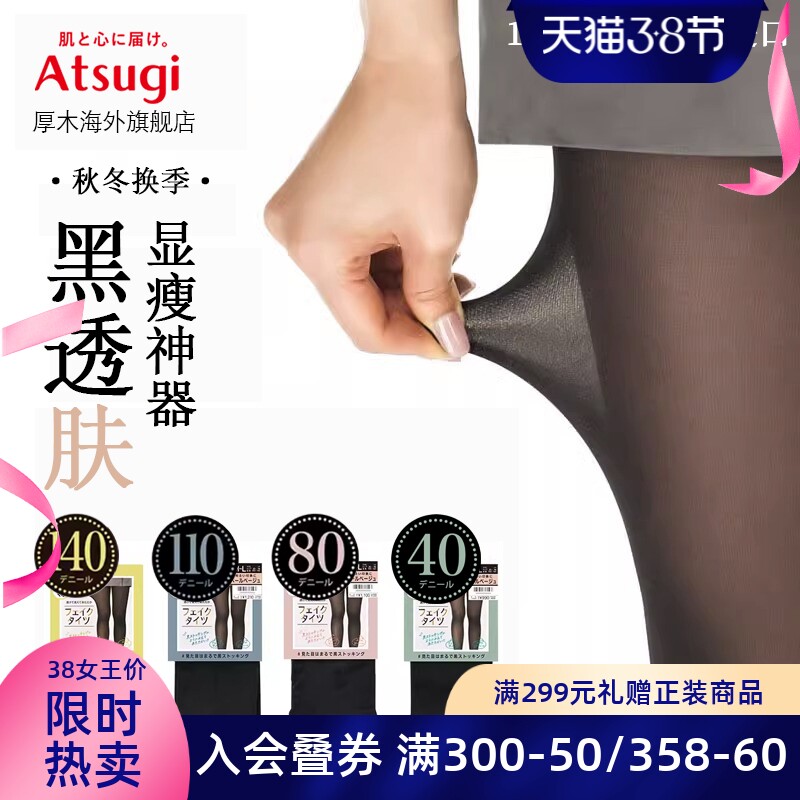 厚木ATSUGI丝袜发热保暖假透肉光腿裸感40D春秋薄款黑色连裤袜女