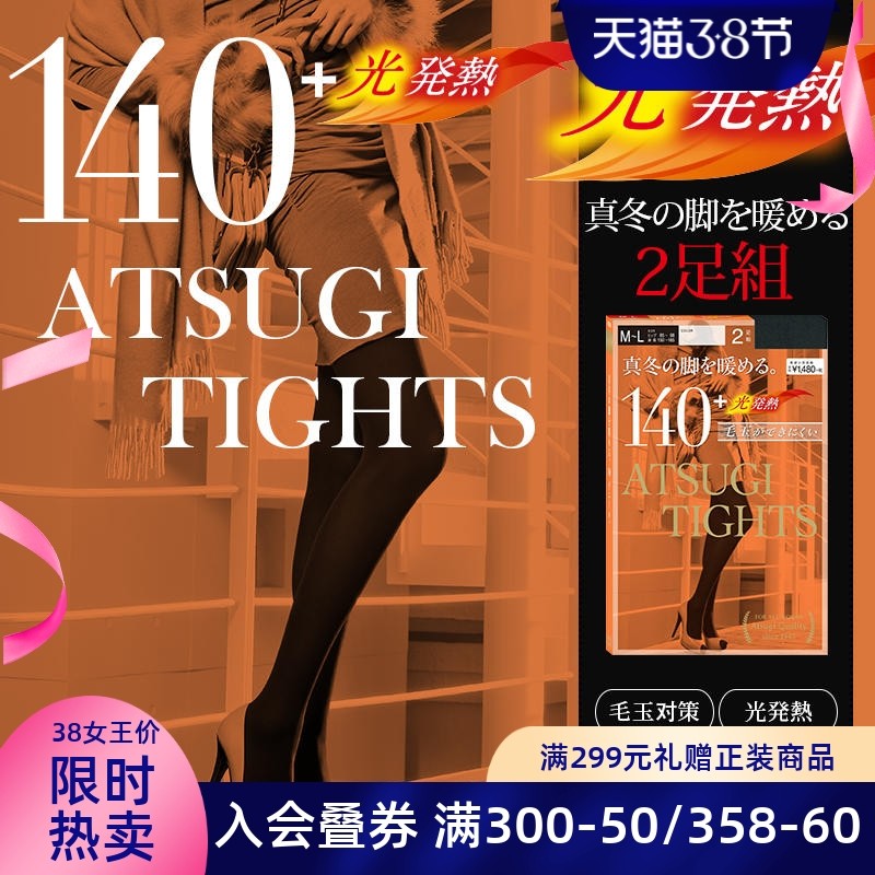 日本 ATSUGI 140D/110D 打底连裤加热袜子发热保暖连体黑丝袜女冬