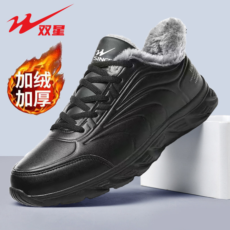 双星老人鞋男冬季加绒保暖男鞋轻便防水加毛加厚棉鞋中老年爸爸鞋