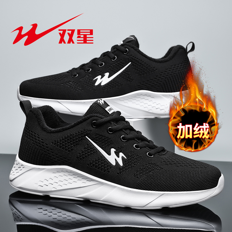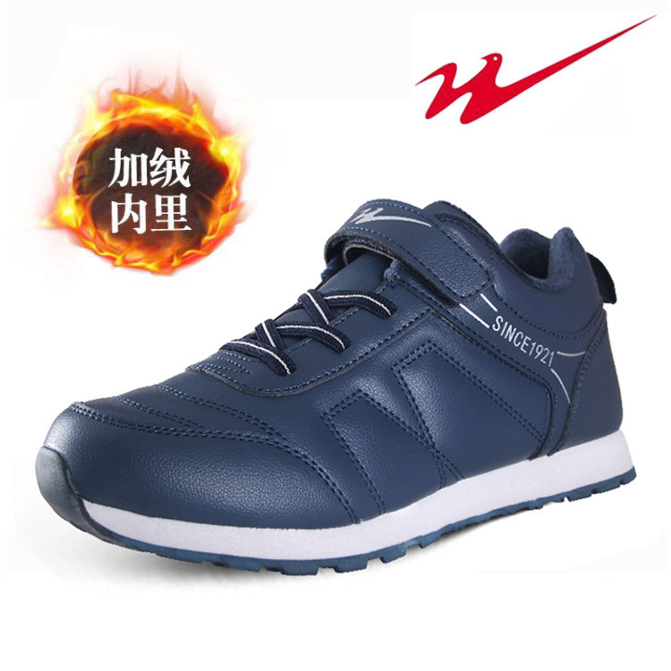 双星名人冬加绒加棉中帮中年老年运动休闲老人鞋男士健步二棉防滑