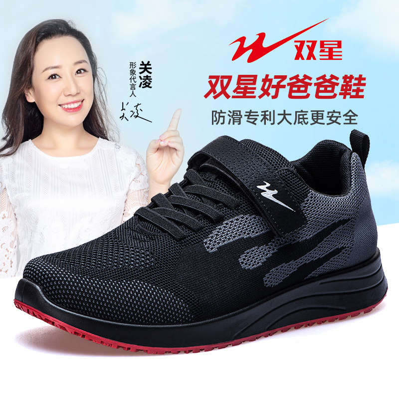 双星老人鞋男春秋款轻便防滑中老年运动鞋网面透气爸爸鞋父亲鞋
