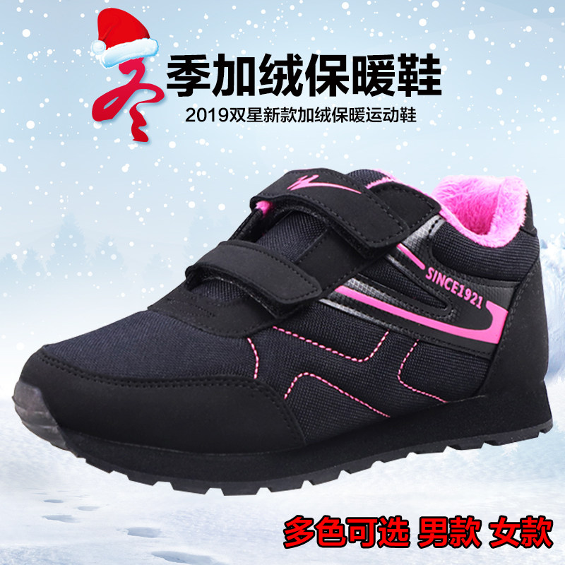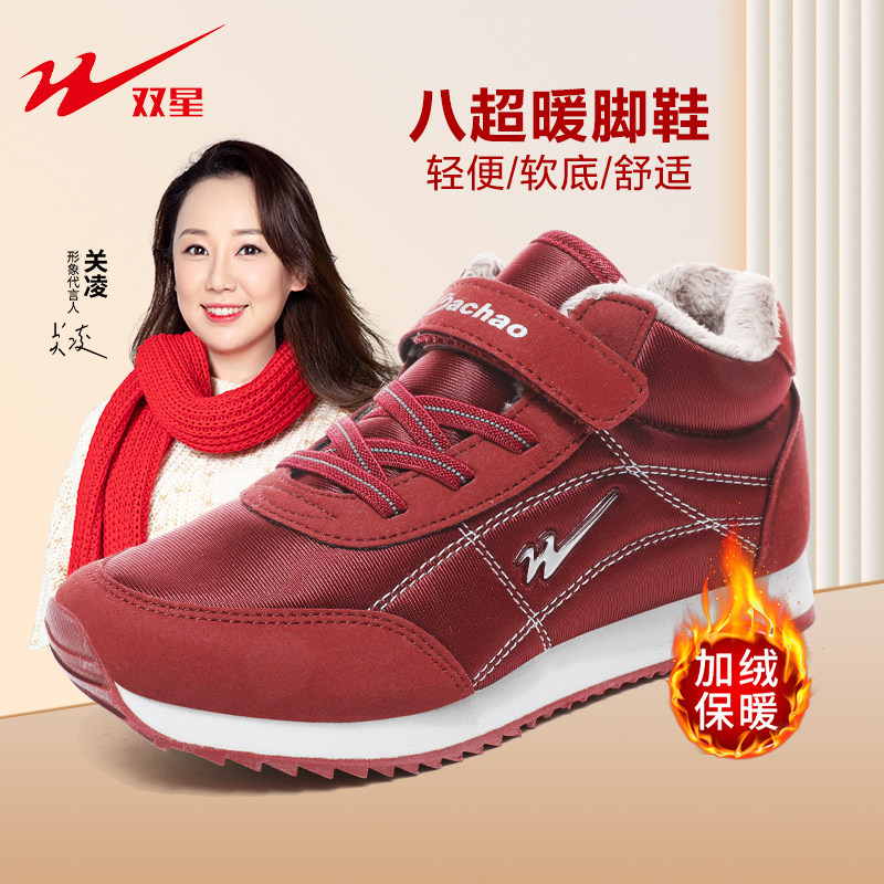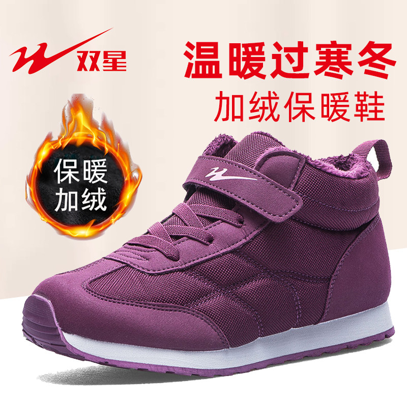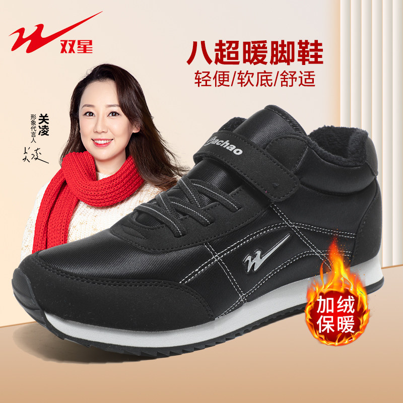 双星女鞋冬季加绒休闲鞋轻便保暖学生鞋平底中老年运动鞋妈妈棉鞋