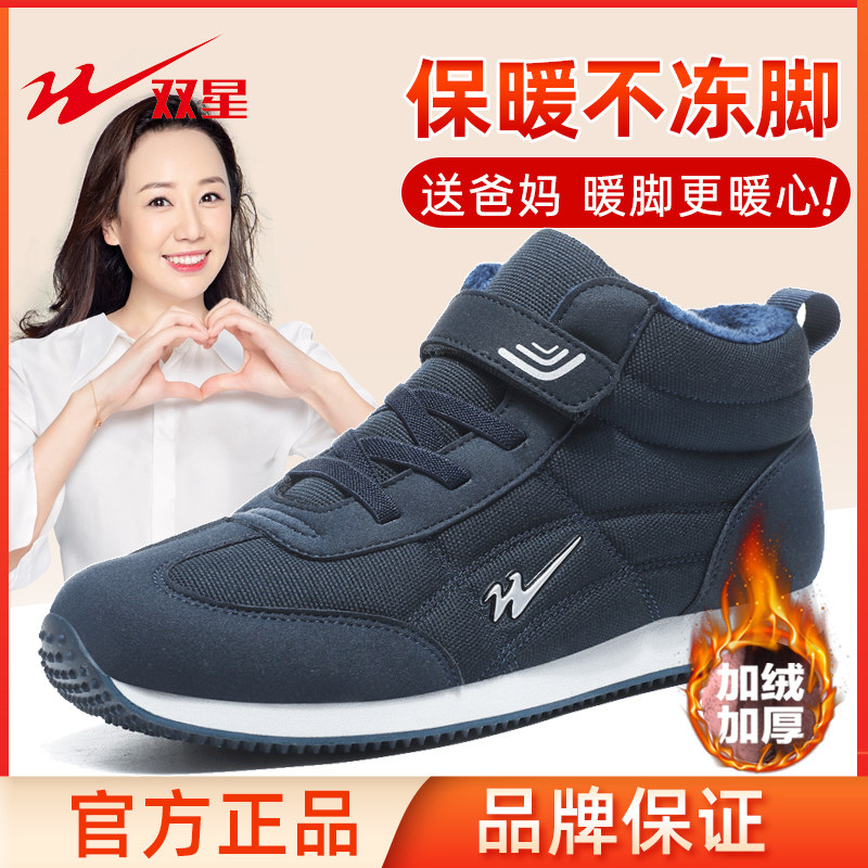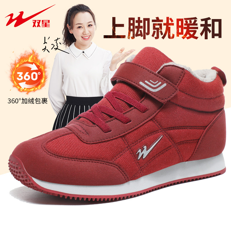 双星棉鞋女冬季新款加绒加毛保暖中老年健身运动鞋高帮防滑妈妈鞋