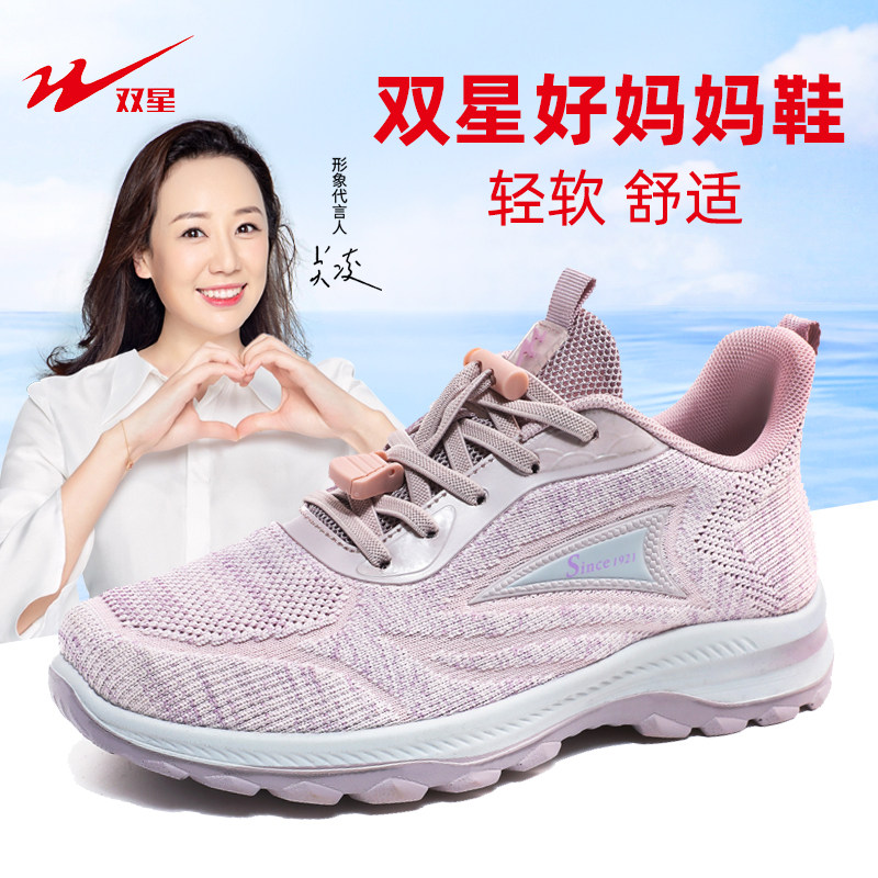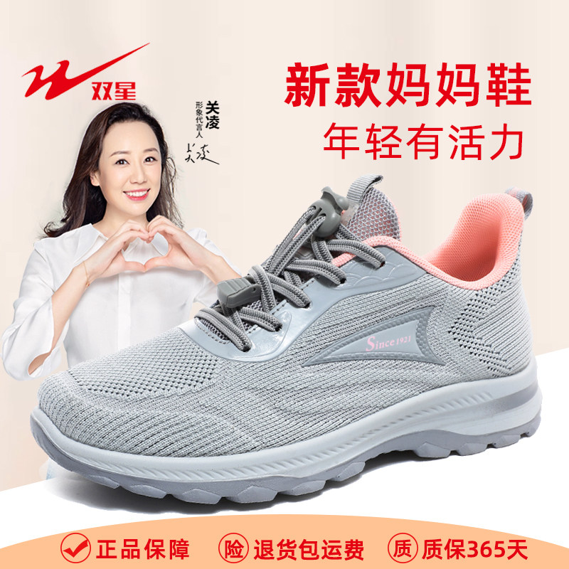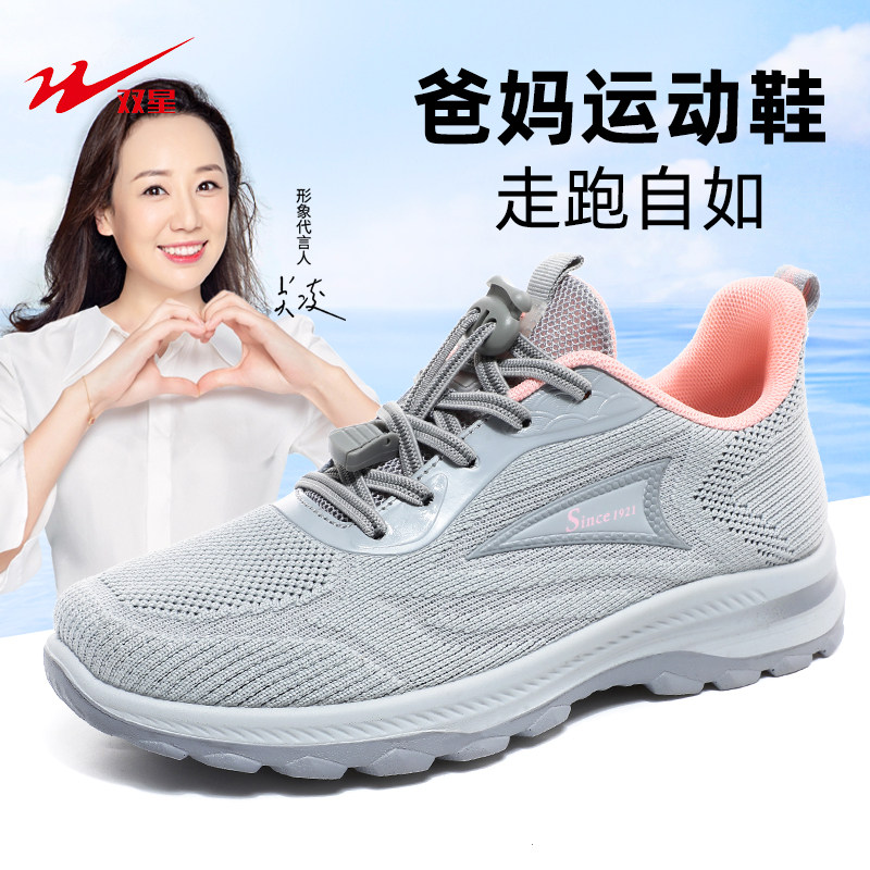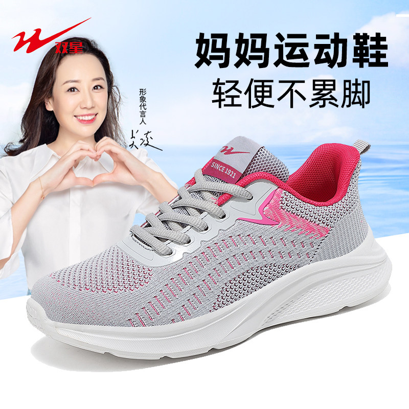 双星妈妈鞋2023新款夏季透气单网休闲鞋轻便软底中老年运动鞋女鞋