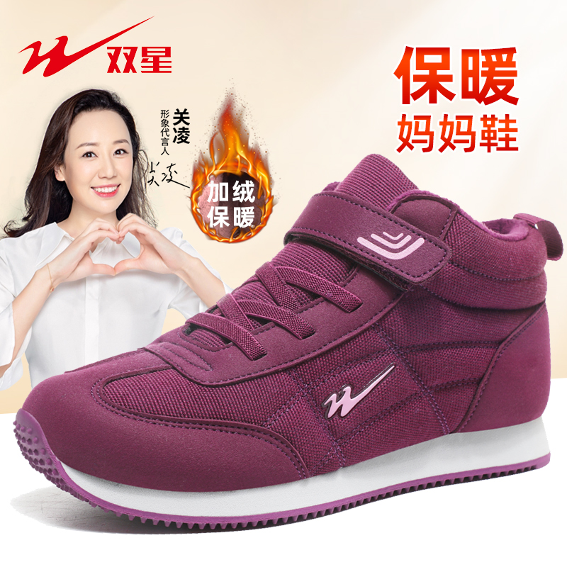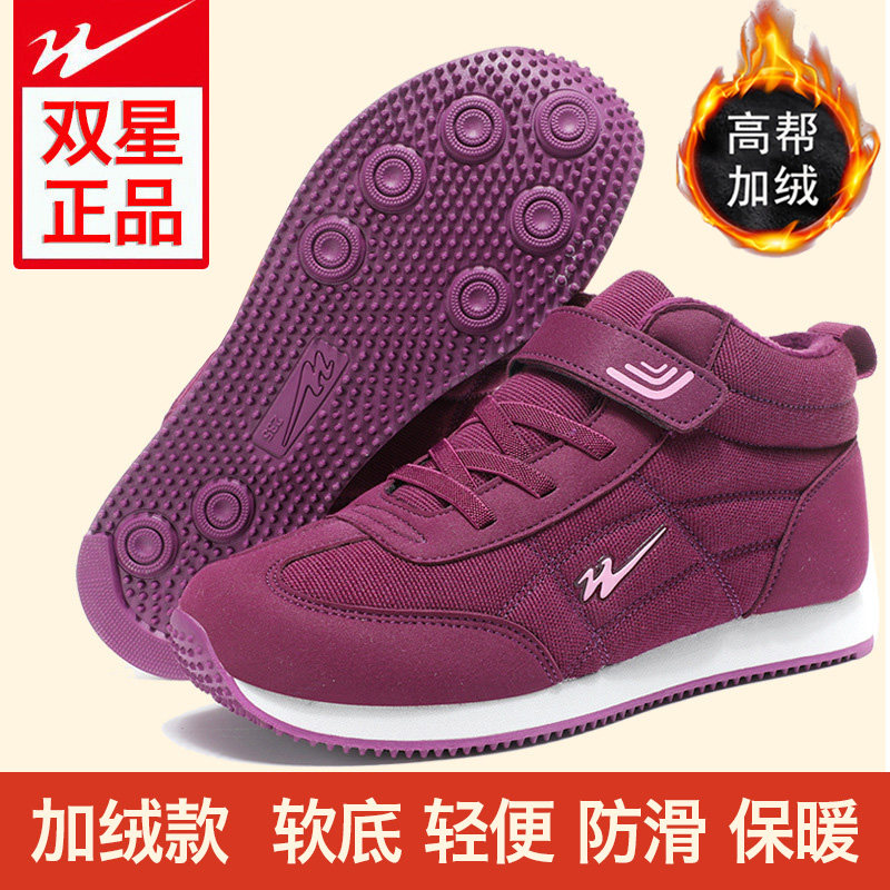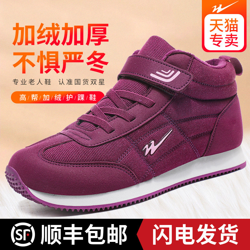 双星老人鞋女冬加绒棉鞋软底防滑中老年运动鞋高帮妈妈鞋顺丰包邮