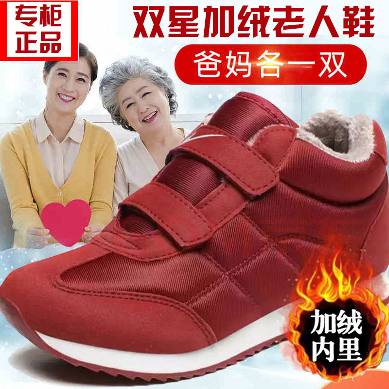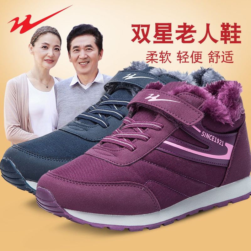 双星名人加绒保暖棉鞋爸妈健步鞋中老年运动男软底防滑老人鞋女冬
