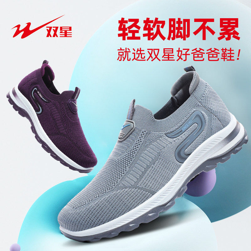 双星爸爸鞋夏季透气网鞋软底轻便一脚蹬休闲鞋男中老年运动鞋父亲