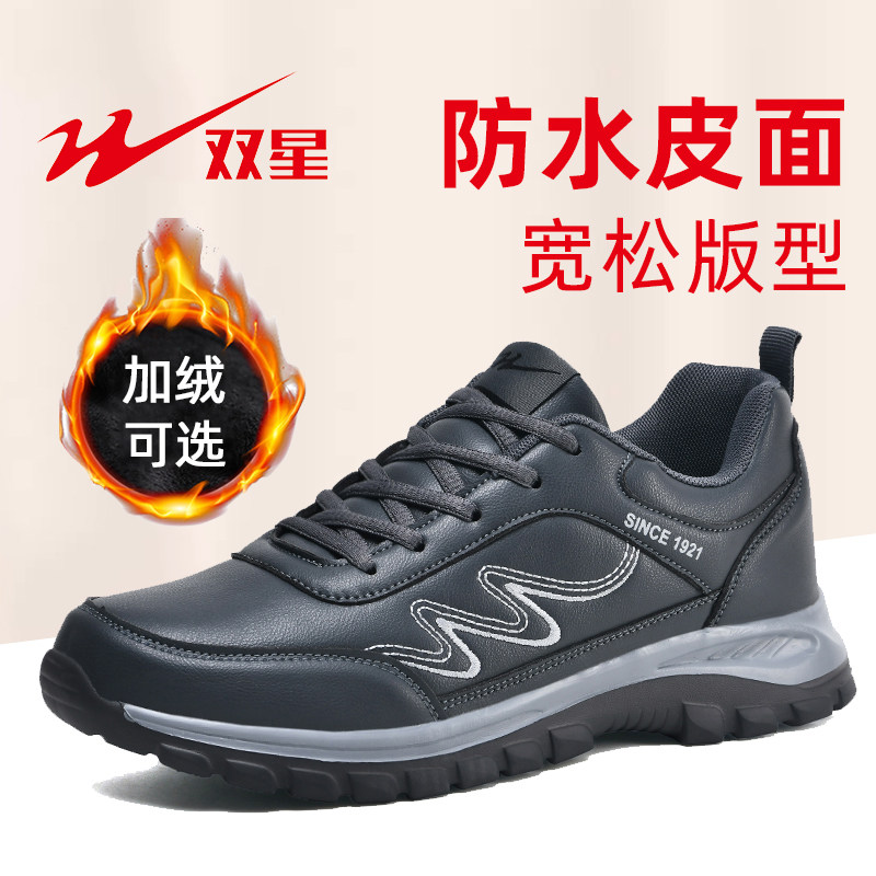 双星皮面鞋男秋冬防水防滑健步鞋中老年爸爸运动鞋八超老人鞋正品