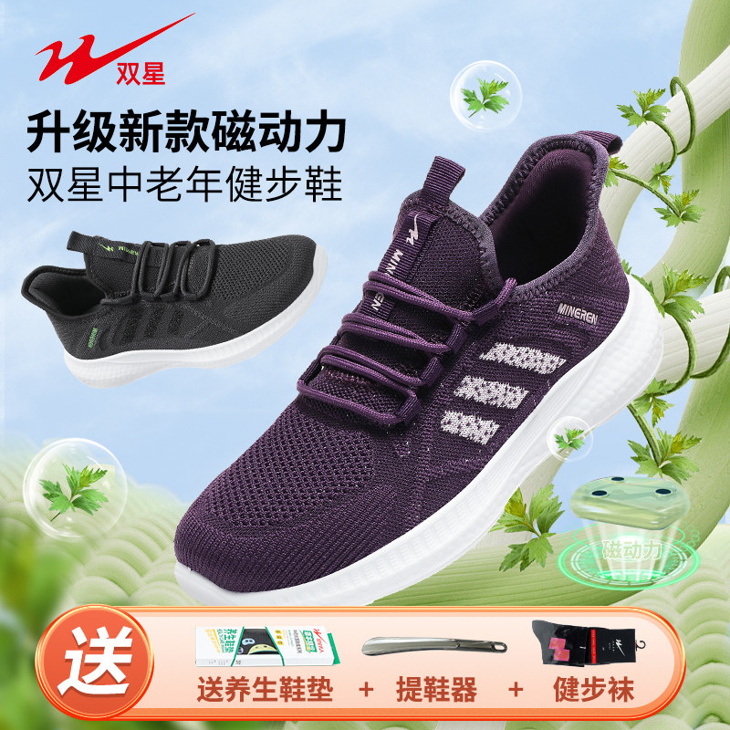 双星八超磁疗鞋老人鞋官方正品新款软底防滑中老年休闲鞋健步鞋女