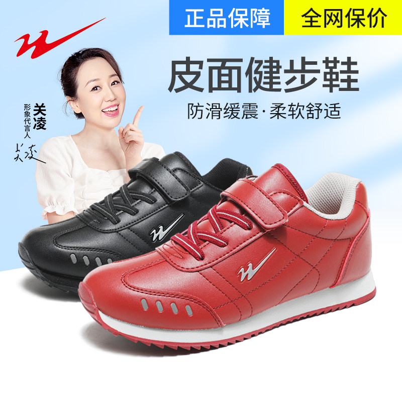 双星名人老人鞋中老年运动鞋秋女防滑防水透气皮面pu软底健步鞋男