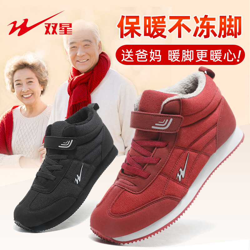 双星名人中帮高帮加绒老人棉鞋男中老年运动女保暖防滑舒适爸妈冬