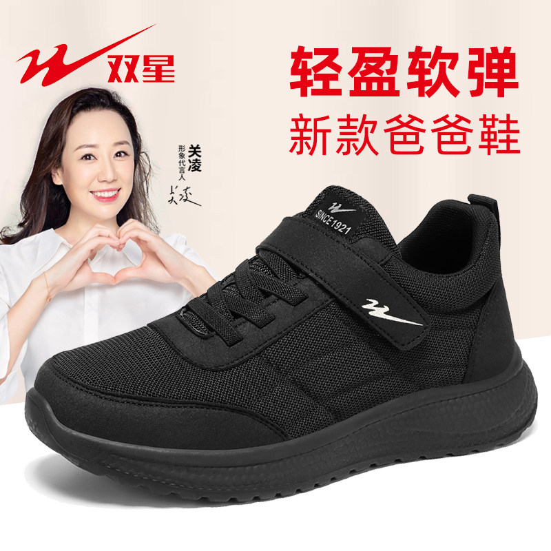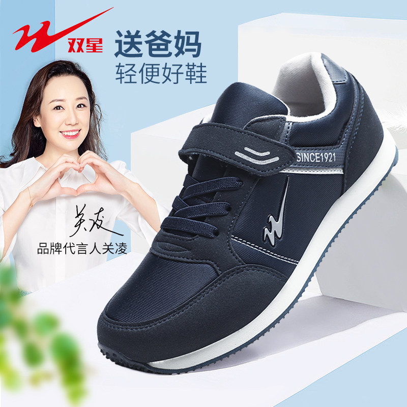 双星老人鞋秋季运动鞋女轻便妈妈鞋休闲鞋女士单鞋中老年健步鞋男