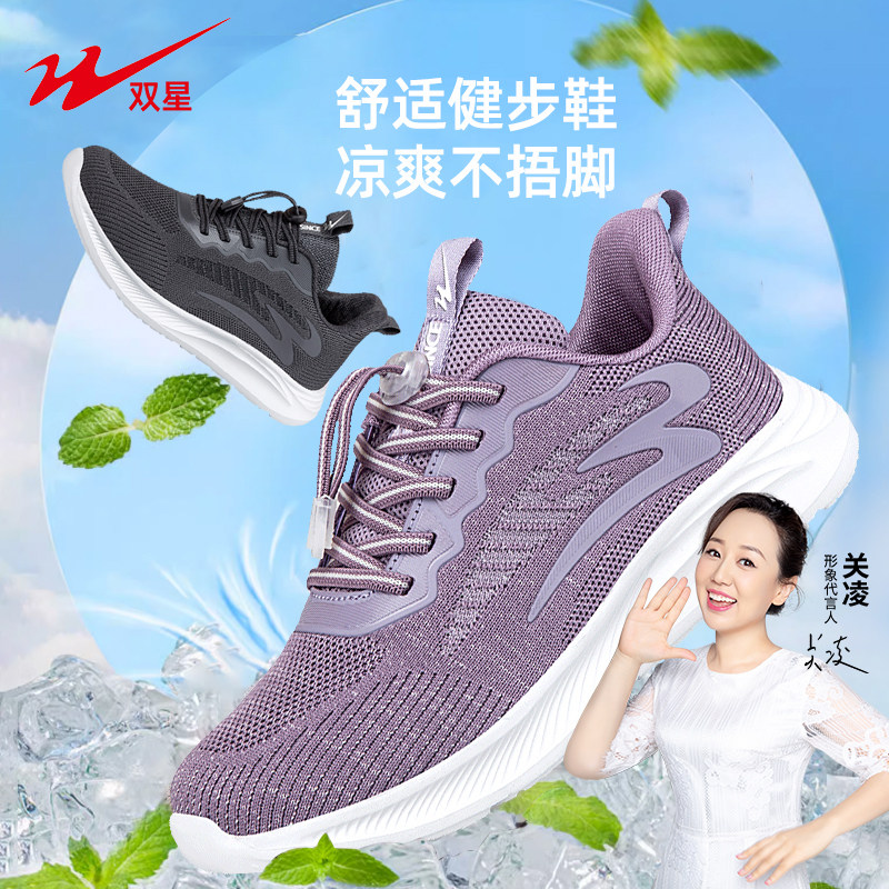 双星名人中老年健步鞋女鞋透气凉爽轻便夏季网面鞋男大网眼运动鞋