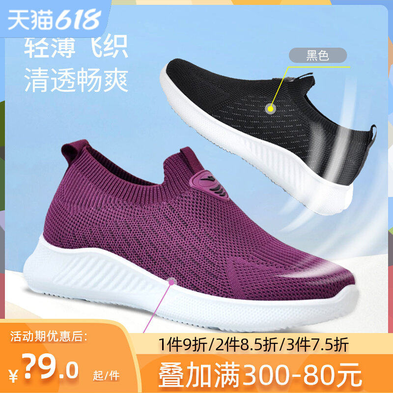 双星老人鞋女秋季一脚蹬休闲鞋透气女鞋舒适运动鞋女士轻便妈妈鞋