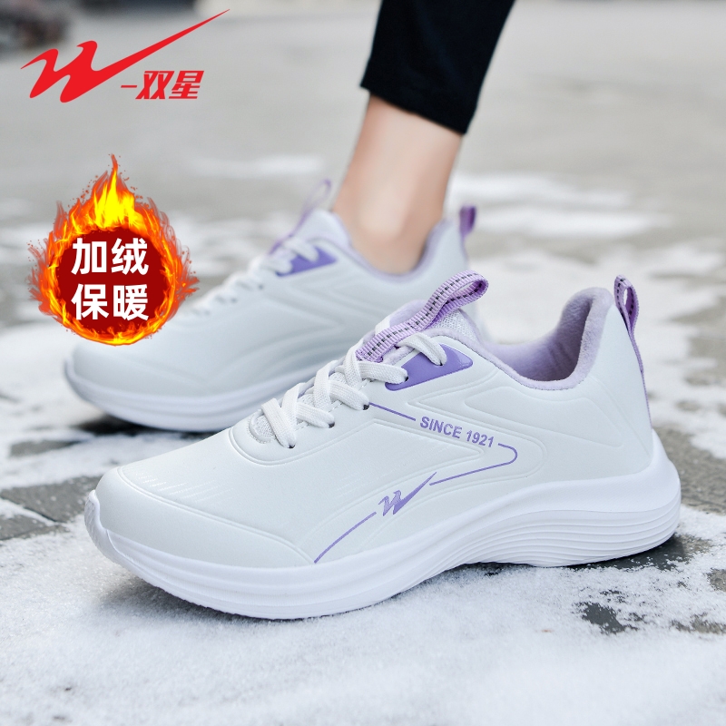 双星运动鞋鞋女2024春季新款加绒保暖棉鞋轻便舒适妈妈鞋皮面女鞋