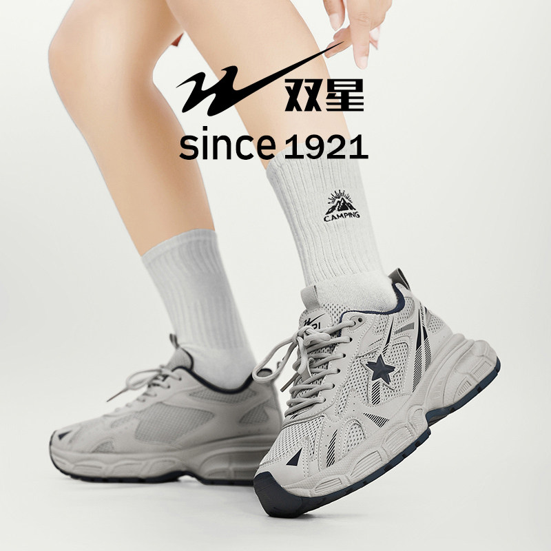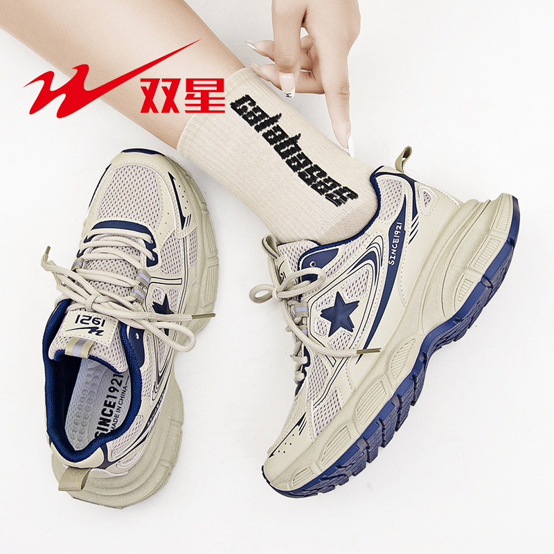 双星女鞋2023新款网鞋透气休闲鞋复古国潮窗台鞋厚底情侣运动鞋夏