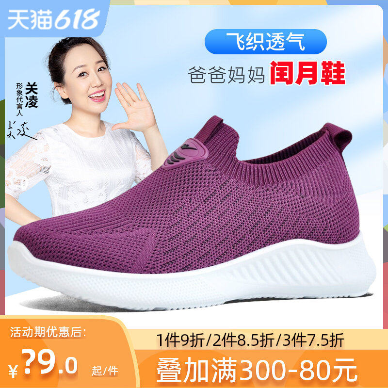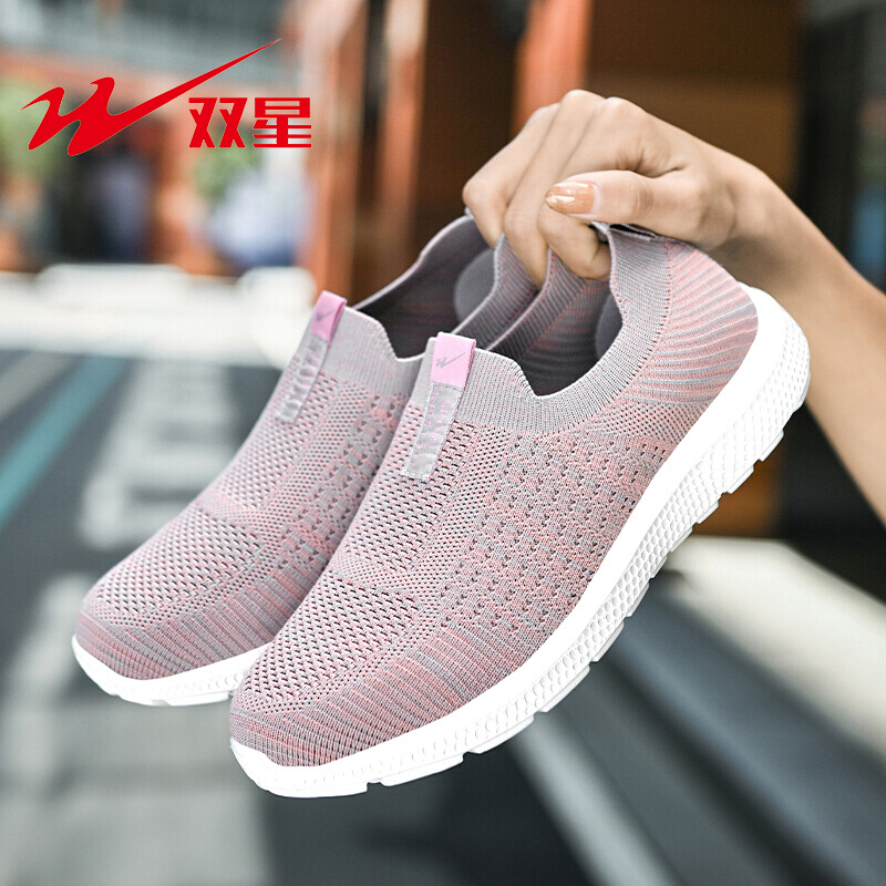 双星老人鞋女秋季透气轻便一脚蹬中老年新款女鞋妈妈鞋运动鞋清仓