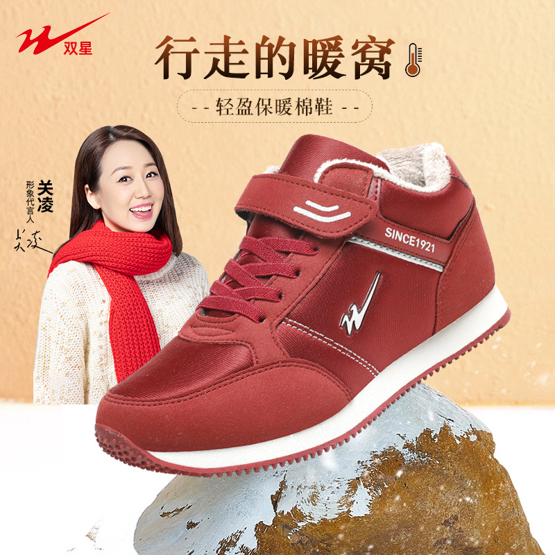 双星女鞋冬季加绒休闲鞋轻便保暖学生鞋平底中老年运动鞋妈妈棉鞋