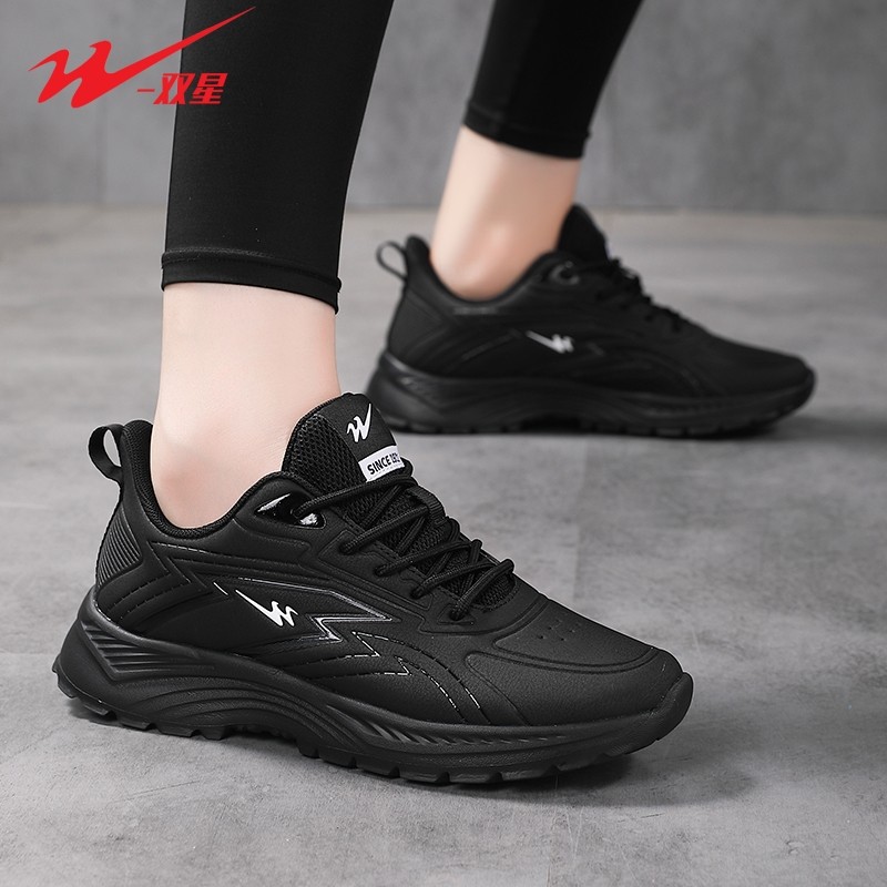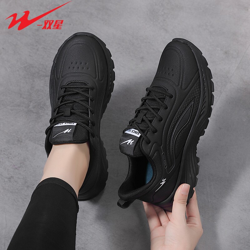 双星运动鞋女2023秋冬新款女鞋轻便舒适防水皮面妈妈鞋女款休闲鞋
