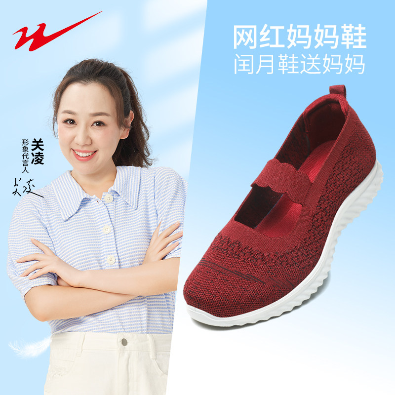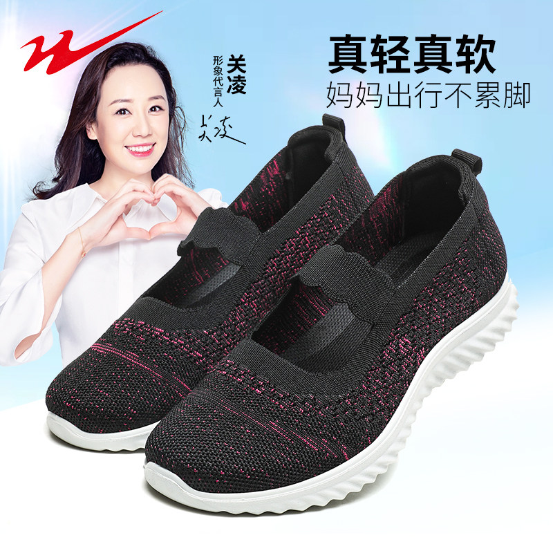 双星女鞋软底妈妈鞋透气一脚蹬老人休闲鞋防滑奶奶鞋中老年运动鞋